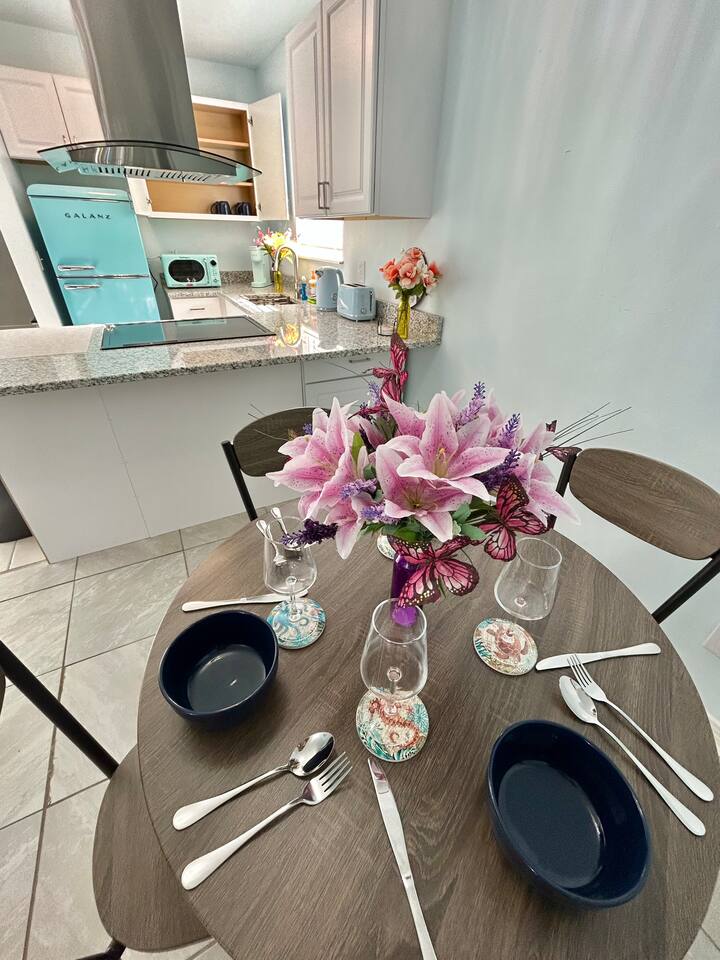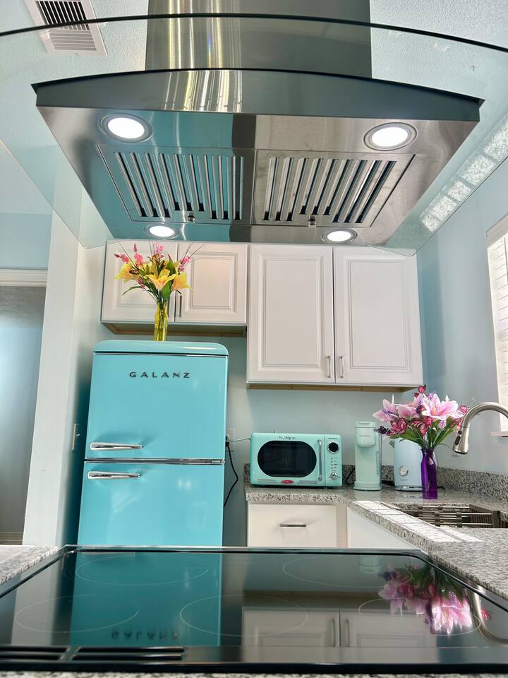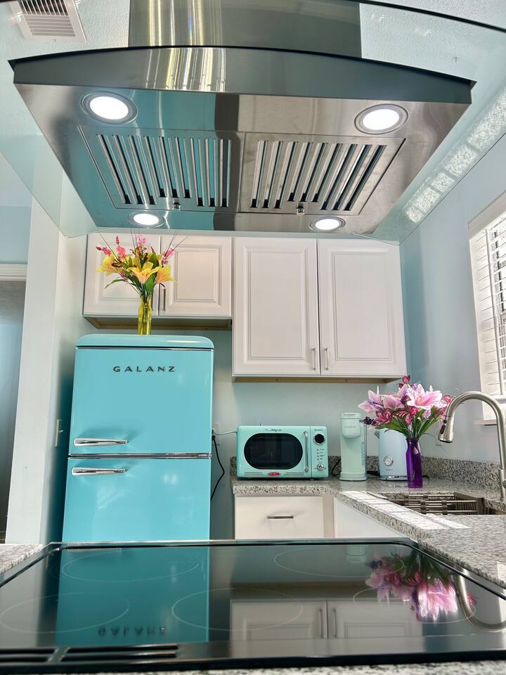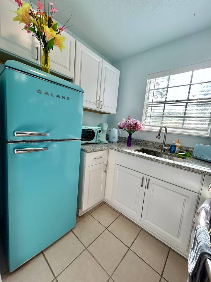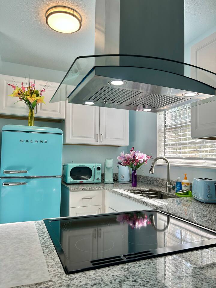 Charming Coastal Getaway Retro Kitchen & King Bed