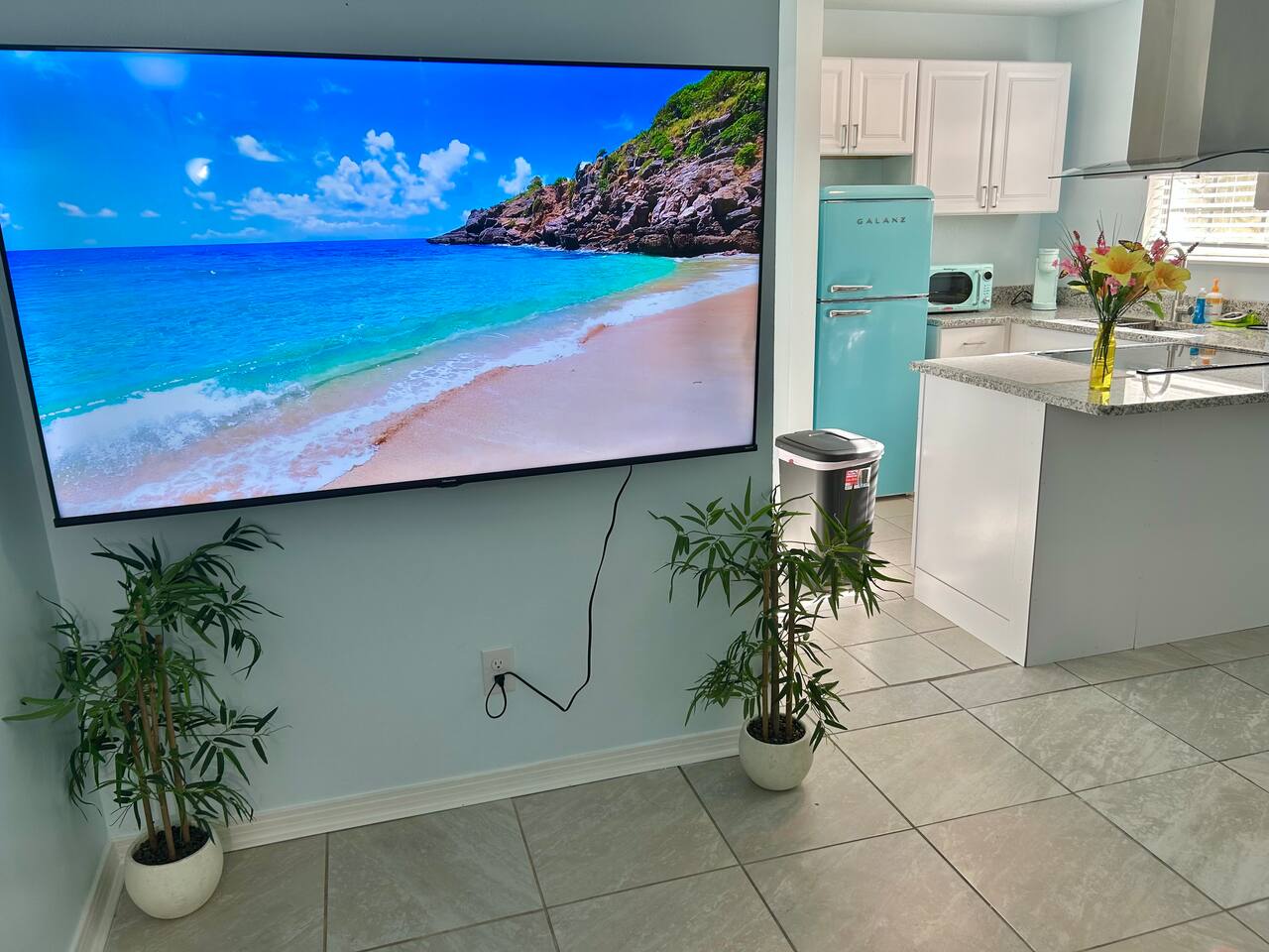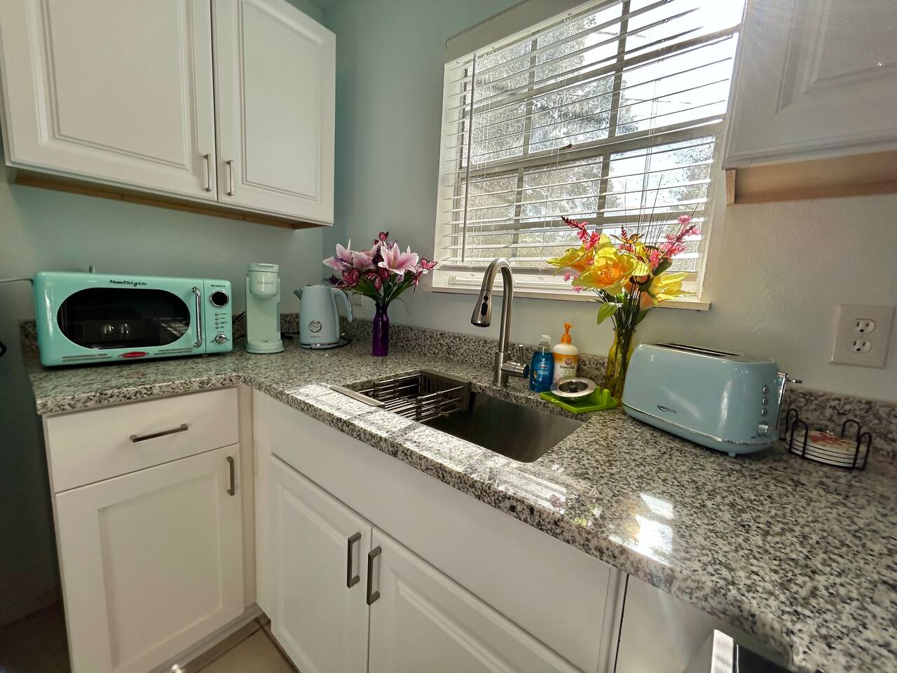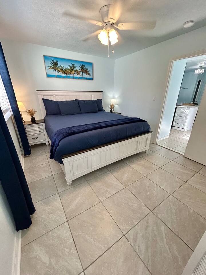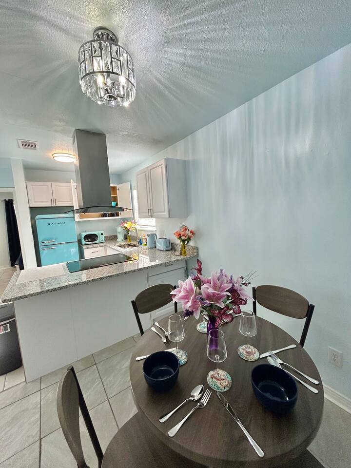 Charming Coastal Getaway Retro Kitchen & King Bed