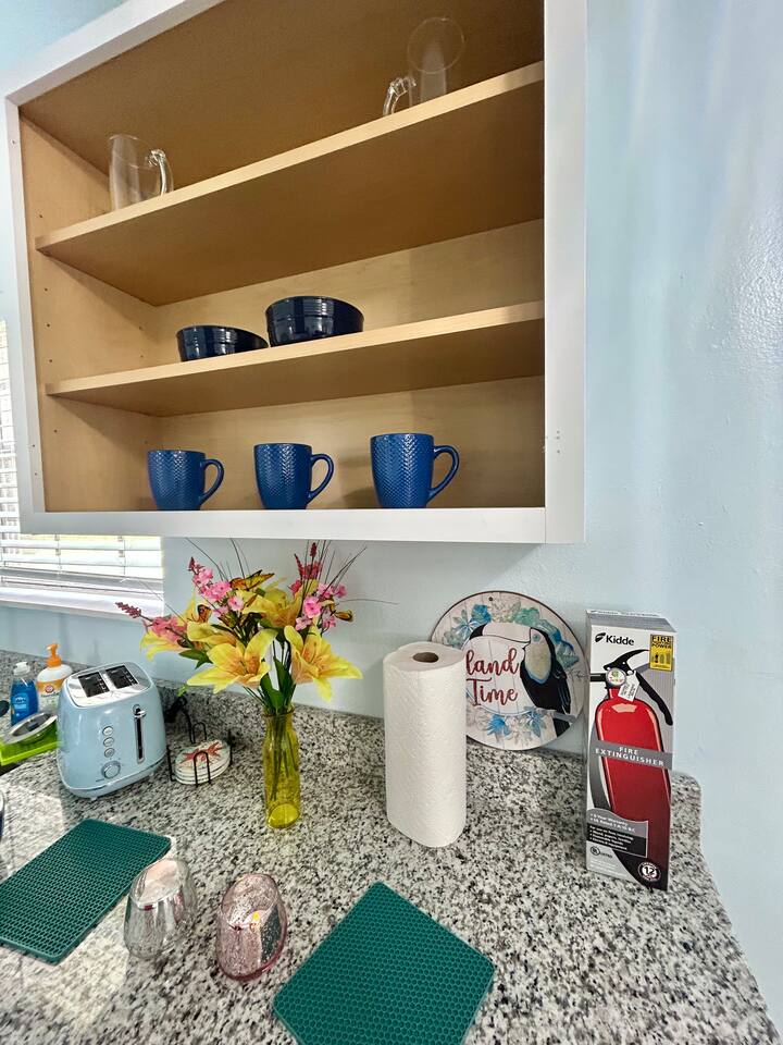 You’ll have the entire unit to yourself, including everything in it. There’s a shared laundry room in the building with a washer and dryer available for all units/guests use. Please note that there are outdoor-only security cameras on the property for safety.
